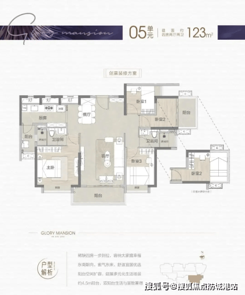 123㎡四房两卫户型,最亮眼的就是横厅设计,实现4米面宽,客厅宽敞明亮,视野开阔,可放置大尺寸沙发、茶几,还能预留出休闲区域,适合家人日常休闲、接待亲友,氛围感拉满。同时,采用南北双阳台设计,南向阳台可作为休闲阳台,放置休闲桌椅、种植花草,享受惬意时光;北向阳台可作为生活阳台,用于洗衣、晾晒、储物,动静分离,实用性极强。南北双阳台形成空气对流,让室内始终保持通透,采光通风俱佳,即使是炎热的夏天,也能保持室内凉爽。